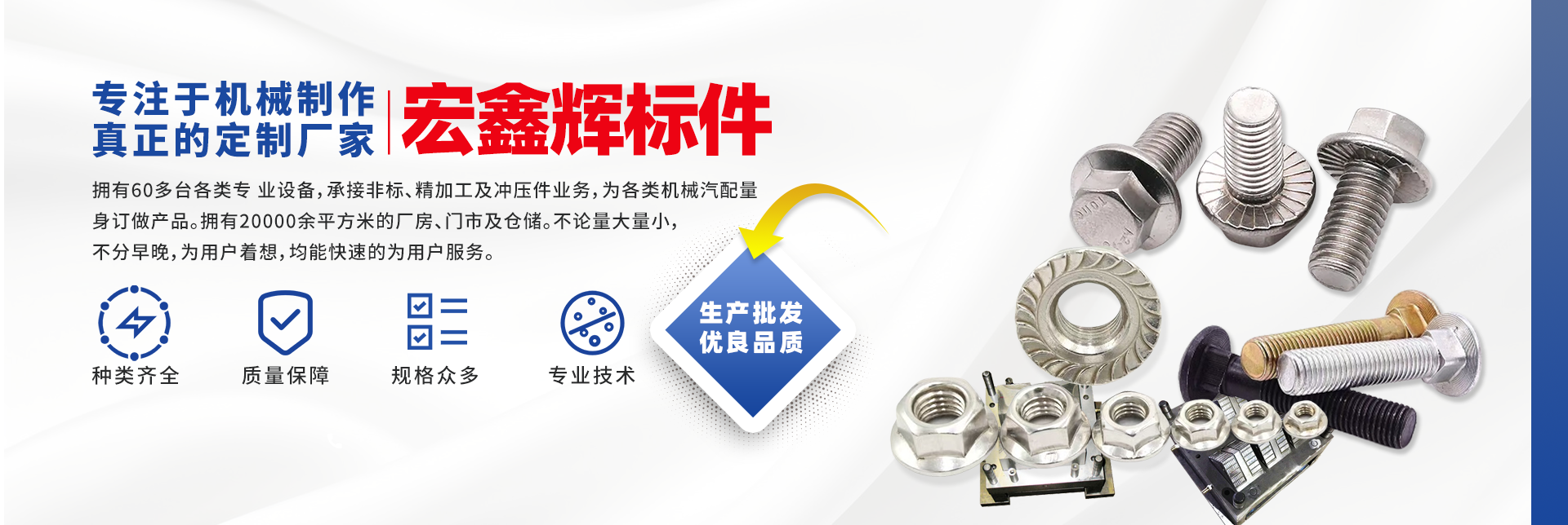 四川宏鑫輝標(biāo)準(zhǔn)件制造有限公司下設(shè):南充市宏輝機(jī)械制造有限公司,南充市聚宏機(jī)電設(shè)備有限公司,公司始建于1994年。為了拓展市場(chǎng),降低成本,本公司于2007年、2020年分別在南充、 成都、重慶創(chuàng)建了生產(chǎn)基地。擁有60多臺(tái)各類(lèi)專(zhuān) 業(yè)設(shè)備,承接非標(biāo)、精加工及沖壓件業(yè)務(wù),為各 類(lèi)機(jī)械汽配量身訂做產(chǎn)品。擁有20000余平方米的廠(chǎng)房、門(mén)市及倉(cāng)儲(chǔ)。公司以誠(chéng)信為本,竭誠(chéng)為廣大客戶(hù)提供服務(wù)。不論量大量小,不分早晚,為用戶(hù)著想,均能快速的為用戶(hù)服務(wù)。